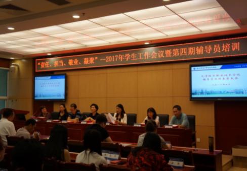 为全面贯彻落实党的十八届六中全会精神,同时深入贯彻落实全国高校思想政治工作会议精神,提高思政工作质量,并切实增强教师及辅导员队伍的思政教育教学专业化、职业化能力,我院于2017年9月5日及9月6日召开主题为“责任、担当、敬业、凝聚”的学生思政工作会议暨第四期辅导员培训会议。学工部、院团委、学生公寓管理中心及二级学院党支部书记、学生科、辅导员、全体出席会议。