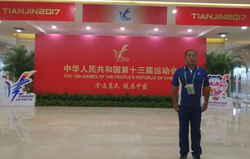 举国瞩目的2017年第十三届全运会是在党的十九大前举办的国内水平最高、规模最大的综合性体育盛会之一,也是北京申冬奥成功和全民健身成为国家战略后举办的一次重要综合性运动会。全运会的田径比赛从9月2日开始,9月7日结束。在此之前,经国家体育总局田径运动管理中心、天津田径运动管理中心层层严格考核选拔,我校赵建东老师荣幸地承担了全运会田赛D组主裁判。