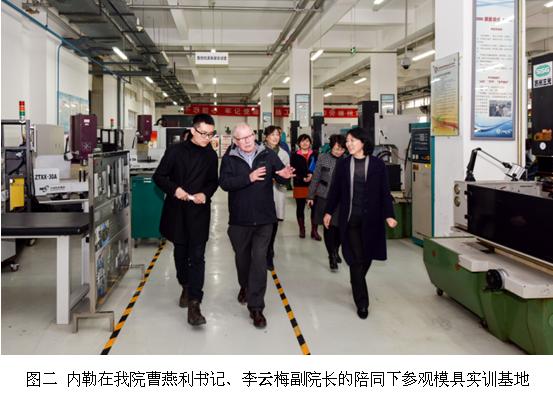 会议结束后,来宾与我院工作人员互赠礼物、深入交谈,并共同参观了我院的机械工程学院及电子信息与自动化学院。内勒对我院的教学资源库表示了很大的兴趣,高度评价我院的教育、实训模式和课程资源库的使用,对今后的合作方向提出了设想。