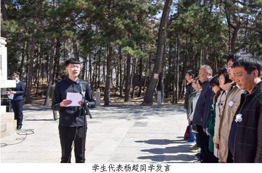 教师党员代表、党委宣传部部长、工会副主席郑文柱同志和学生团员代表、青年马克思主义学社负责人杨超同学代表在烈士纪念碑前庄严地表达了对革命先烈的无限哀思和坚定理想信念的决心。党委书记曹燕利同志在讲话中缅怀了包森、田野、李子光等革命烈士的英雄事迹,并对全体师生提出了要求,希望大家继承革命先烈遗志,大力弘扬革命先烈对革命理想和事业无比忠诚的伟大精神,争当新时代“工匠”,为实现学院高质量发展的新目标贡献力量。
