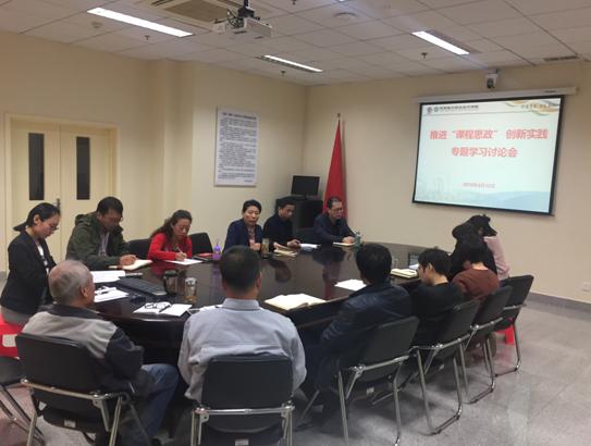 会议集中学习了学院《关于在课堂教学中开展“课程思政”创新实践的工作方案》文件精神,对党支部履行思想政治工作主体责任和党员教师带头树立“课程思政”意识提出了要求,并就开展集中学习和课程设计探索的有关工作进行了部署。党委书记曹燕利同志分享了市委教育工委“我与新时代同成长”报告会精神,并结合实际讲解了“课程思政”的深刻内涵和创建途径探索。教务处副处长王宝龙通报了学院关于“课程思政”的推进情况,并对“2+4”建设进展情况进行了说明,并就试点课程立项以来的工作开展畅谈了感想和体会。与会人员围绕“课程思政”的含义、“课程”与“思政”如何相互融合以及如何挖掘创新实践活动的实际效果等方面进行了深度讨论,大家高度认同学院提出的以“知识技能传授与价值素养引领相结合”的途径贯穿教学全方位全过程的“课程思政”基本理念,对党员带头示范的做法给予充分认可,任课教师要积极发掘各类课程的思想政治理论教育资源,把价值观培育和塑造通过“基因式”融入课程,将教书育人的内涵落实在理论和实训教学主渠道,积极探索,挖掘思政资源,将思政元素有机融入专业教学中。