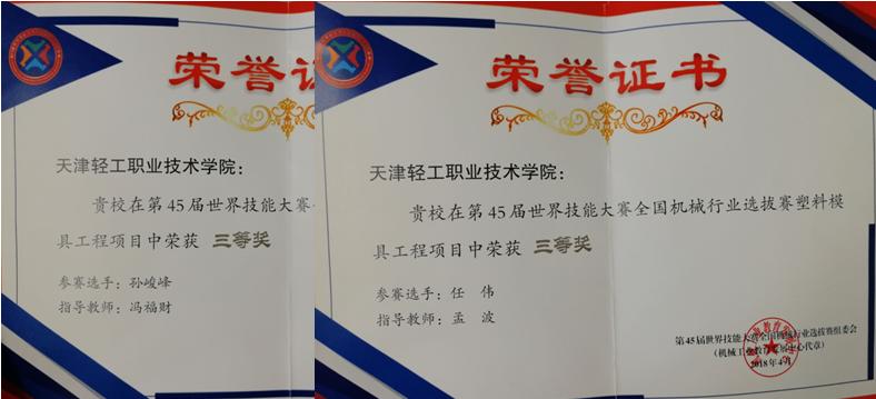 我院老师带领参赛选手参加2018年第45届世界技能大赛模具工程项目选拔赛,两名选手均获得三等奖。
