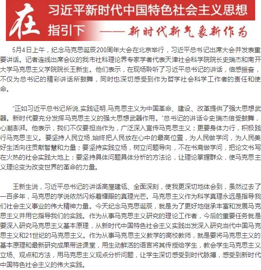 纪念马克思诞辰200周年大会举行 记者连线与会天津专家学者