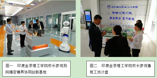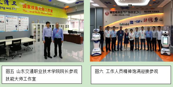 今天共接待五批来宾,机械工程学院院长周树银、实训中心主任张炳德、精密模具协同创新中心主任苏越、机械工程学院副主任杨国星等接待了来访客人。由专业教师讲解并演示精密模具智能生产线原理及加工过程、鲁班工坊沙盘、专业一体化教室,技能大师讲解了大师工作室团队、技术服务、学生技能大赛等,展示了我院先进的教学理念、实训设备及教学成果。其中印度金奈理工学院(Chennai institute of technology India )校长SRIRAM看到鲁班工坊沙盘展示,赞不绝口,说做的很漂亮,给他很熟悉的感觉;山东交通职业技术学院王心院长通过参观体验精密模具协同创新研发基地,深入地了解先进智能制造理念及发展趋势,对我院先进办学理念与特色、校园文化建设表示赞赏。