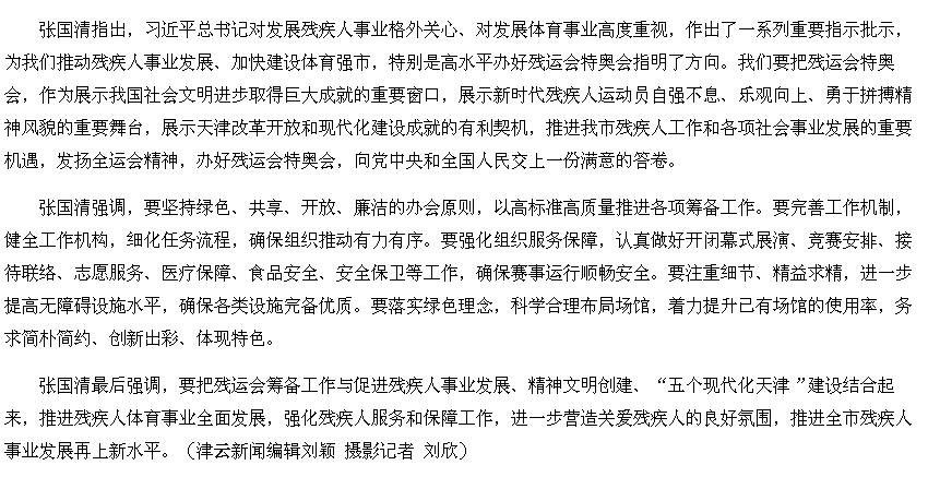 张国清出席全国第十届残运会暨第七届特奥会筹委会成立大会 办成一届“创新务实节俭”的高水平体育盛会