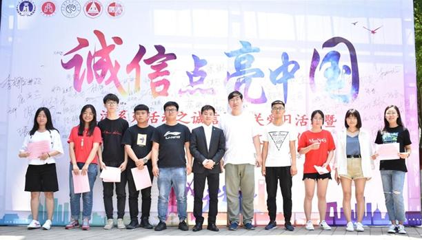 2018年6月14日,在新利18平台经济管理学院门前举办以“诚信点亮中国”为主题的6.14信用记录关爱日宣传活动暨“诚信点亮中国”有奖征文启动仪式。此次活动由在本市范围内所有开设信用管理专业的4所高校共同发起主办,天津财经大学、天津商业大学、天津职业技术师范大学均派代表参加了此次启动仪式。