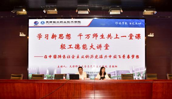 为进一步深入学习贯彻习近平新时代中国特色社会主义思想,深入学习贯彻习近平总书记在北京大学师生座谈会和纪念马克思诞辰200周年大会上的重要讲话精神,加快推进我院新时代思想政治工作改革创新,提升思想政治教育工作质量,按照市委教育工委《天津市高校“学习新思想,千万师生同上一堂课活动”实施方案》的要求,6月21日下午,我院德能大讲堂邀请天津师范大学马克思主义学院副院长、博士生导师、全国思政课教学能手、天津市思想政治理论课名师工作室--李朝阳工作室负责人李朝阳教授作题为“在中国特色社会主义的历史接力中放飞青春梦想”的专题报告会,报告会由纪委书记韩淑君主持。青年教师、思政教学部门教师、辅导员及300多名学生聆听了报告会。