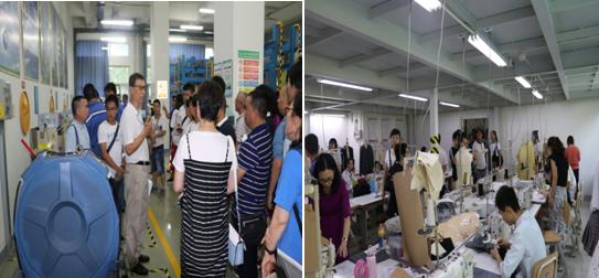 在自动化学院,院长王建明详细介绍了智能家居物联网、三菱电梯、新能源等专业实训室建设和设备使用情况,实训室一尘不染的工作环境,现代化的教学设施设备,给参观人员留下了深刻的印象;在经管学院,O2O智能物流实训中心让参观人员对网上购物流程有了全面直观的了解,肯德基现代学徒制校企合作实训室向参观人员展示了全新的教学理念;在艺术学院的时装缝纫工作室,参观人员对学生设计制作的服装表现出浓厚兴趣;在机械学院精密模具协同创新研发基地,参观人员驻足仔细观看展示的模型,对师生作品中展现的精益求精精神和高超技艺表示赞叹。