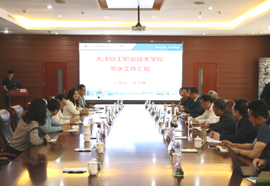 会议伊始,褚建伟院长首先对调研组一行来我院进行节水工作调研指导表示热烈欢迎,并向调研组简要介绍了学院整体建设、特色学科发展及节水项目建设等情况。褚院长指出:学院隶属天津渤海轻工投资集团有限公司,行业办学为依托,符合产教融合的发展模式,2014年学院荣获国家级优秀示范性骨干高职院校。学院主动服务国家“一带一路”倡议,联合兄弟院校支持中国企业和产品“走出去”,启动运营了印度鲁班工坊,实现了职业教育服务国际产能合作的重大突破。学院在能源管理信息化建设方面走在天津高职院校的前列,将企业先进技术和学院专业结合,打造实训基地。学院节水工作在国家的倡导下,在市水务局、集团科技部、园区管委会的大力支持下,积极推动二次用水的项目立项,希望各位专家给予指导和支持,能够在海河教育园区起到引领示范作用。