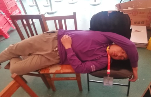累了他们就利用空闲时间搭几张椅子简单休息一下;其他同学身体不适的时候,他们总会主动顶替空缺岗位;当遇到突发情况的时候,他们总是第一时间赶到现场。在两天的比赛日中,奋战在志愿者服务岗位上的他们,都在自己的岗位上尽心尽责,用自己的实际行动回报学院对他们的信任,在激情的志愿服务活动中绽放出青春之花。