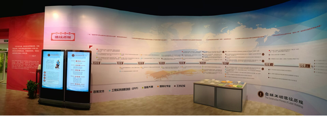 改建后的鲁班工坊建设·体验馆,其主体展区是由8个已建成的鲁班工坊和2个在建鲁班工坊组成。为了能准备把握每个鲁班工坊的特色,项目改建工作团队积极同每个鲁班工坊建设院校进行沟通和交流,通过指定专项负责人的方式,保证每个鲁班工坊展区材料和信息传递的及时、准确、有效,确保每个鲁班工坊展区的建设按时间节点稳步推进,极大提升了展馆整体建设效率。
