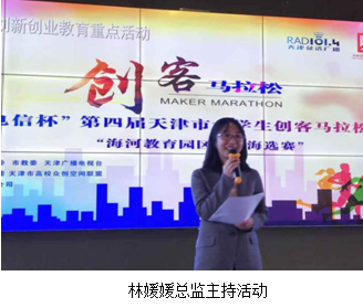 大赛发起人之一——天津经济广播林媛媛总监主持此次活动,并向领导与同学们详细介绍了创客马拉松大赛。创客马拉松大赛已经成功举办三届,三年来,3000多个参赛团队在大赛中获得了创新教育、创业投资、创业培训、学分奖励等不同的收获,在高校中获得较高的美誉度。