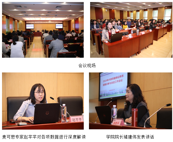 会议首先由麦可思数据分析专家赵芊芊根据麦可思建立的全国高等教育数据参考体系,结合我校应届生的毕业去向、就业质量、学院教学质量、学生工作、生活服务、就业指导等多个指标的变化趋势,对我校《应届毕业生培养质量评价报告》、《学生成长评价报告》中所反映的各项指标和数据进行详细解读,从麦可思评价报告中可以体现出学院的教育教学、创新创业、就业服务、生活服务等方面水平均有了很大的提升,同时客观分析了存在的问题也相对应地提出了专业的整改建议。