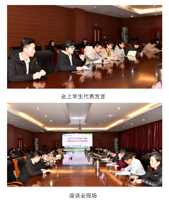 为全面了解学院教学整体运行情况和教学过程中存在的问题,进一步改进教学过程、提升教学质量,学院于12月20日下午13:30在行政楼第一会议室召开了2019-2020学年第一学期“教学专题院领导与学生代表座谈会”。参加此次会议的有学院院长褚建伟、副院长王鹏,教务处、学工部、团委、图文信息中心、二级学院负责人、全体兼职督导,以及来自四个二级学院的8名学生代表。