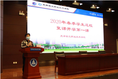 抗击疫情,彰显大爱,会议现场全体师生共同观看由海河教育园区、高教出版社联合海河教育园区高校共同创作的纪录片《欢迎回校—抗击疫情,彰显大爱》。纪录片讲述了疫情发生以来,全国上下万众一心、众志成城,共同投入到了阻击疫情的感人场景。充分体现了中国人民一方有难,八方支援、守望相助的英雄本色。危机面前,中国人民共赴时艰的英勇事迹。同时纪录片展示了天津海河教育园区所有校领导对学生归校的期许与嘱托,表达了学校为阻击疫情所作出的努力和付出,彰显了职教人的敬业与担当。