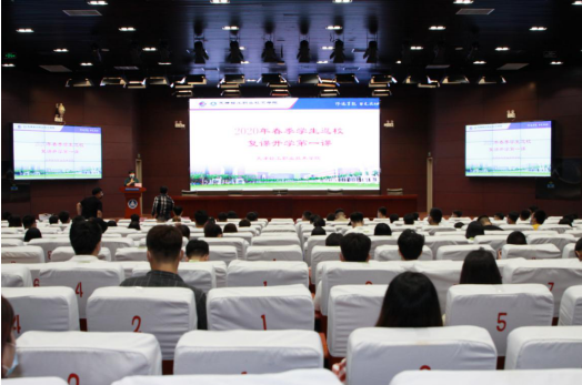 2020年5月27日下午14:00在学院报告厅内开展了“2020年春季学生返校复课开学第一课”。学院院长褚建伟、学院副院长王鹏、学生工作部部长马延宏和二级学院学生思想政治工作岗位人员及专、兼职辅导员53名教师;18级三年制、17本科班、18本科班学生代表共计136名同学参加会议。大会由学生工作部孙熙烛主持。