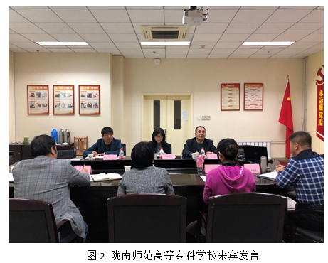 2020年11月4日,陇南师范高等专科学校校长李艳红带队一行三人于我校调研考察。副院长李云梅、教务处处长王宝龙、经济管理学院院长白洁、招生就业处副处长田洪军、电子商务教研室主任宫晋强、科研处教师王妍接待。