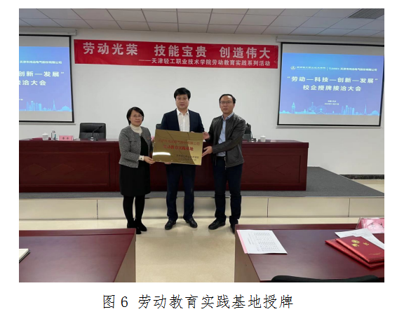 会议第五项,李云梅副院长、李子铮副院长向鸿远电气授予劳动教育实践基地牌匾。参会人员合影留念。