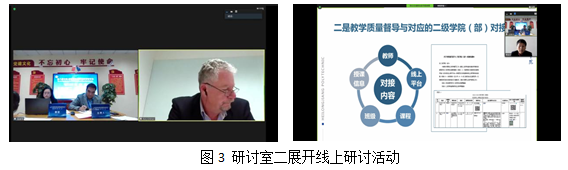 研讨主题三为职业教育线上教育教学研究,针对职业教育研究人员,开展线上教育教学科研讨论。研讨室主持人为新利18平台科研处(职教中心)副处长王春媚。研讨中,山东职业技术学院副教授孙长秋围绕探讨线上教育教学保障机制与实践进行经验分享;新西兰东部理工学院教师斯里达丝·伊卡拉丝、芭芭拉·克内尔进行主题为《从混合式教育到在线教学:学习设计面临的挑战、学习者参与和一些实用的解决方案》的发言;太原师范学院副教授(山西华兴科软有限公司总经理)李华君围绕中国与新西兰职业教育交流共享平台的建设与运营进行发言;新西兰东部理工学院首席讲师艾默尔·尔图尔克针对技术在线教育中的团队教学与客座课程相关内容进行研讨分享。
