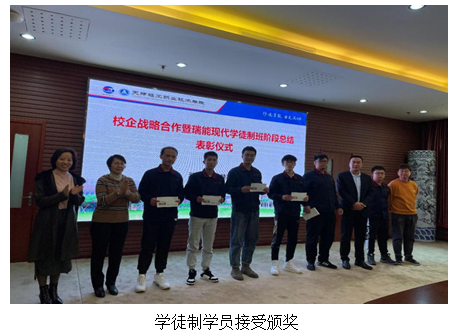 总结会议结束之后,学院领导与企业代表为学徒制学员颁奖,同时学院领导为学徒制指导教师颁奖,感谢他们的指导与辛苦付出。
