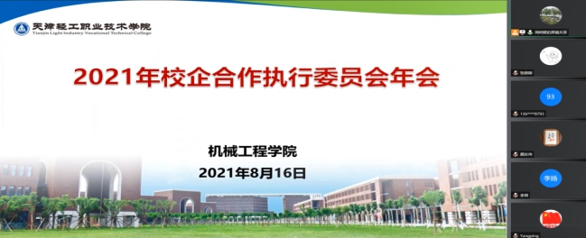 2021年8月16日下午1:30,机械工程学院召开了2021年校企合作委员会年会,采用腾讯会议的方式进行。参加会议的有天津模具工业协会秘书长王振云、天津汽车模具股份有限公司人力资源部部长李鑫、天津津兆机电开发有限公司人力资源部部长杨萍、卡尔蔡司工业测量(上海)有限公司)北方区域销售总监罗红梅及工程师张乾乾、教育培训专家陈彦新等共6位企业专家。学院参加的人员有机械工程学院二级学院班子成员、专业群中心主任、各教研室主任、教务科科长、教师代表及学生代表。会议由机械工程学院院长周树银主持。