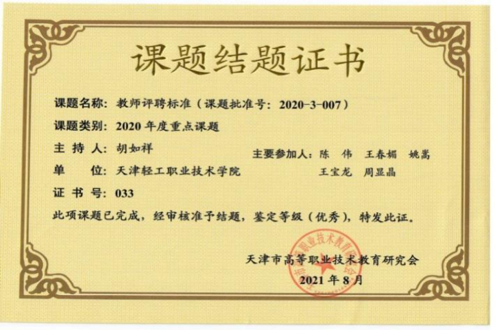 教师评聘标准课题结题证书
