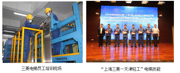 上海三菱电梯有限公司是国内规模较大的电梯制造销售企业,产品市场占有率至今在国内保持领先地位,是全国最大的500家外商投资企业之一。学院与上海三菱展开深度合作,在校内共建了占地1200平方米的“华北大区电梯安装与维修培训基地”,由上海三菱以“准捐赠”的形式,支持学院三部直梯、一部扶梯、三套电梯层门教学用具和零配件,总价值近500万元,并随着技术进步和产品更新换代由企业随时更新替换,学院也配套价值300余万元的相应设施。该基地是上海三菱华北地区校企合作共建实训基地的标志性项目,学院与上海三菱联合开办以企业冠名的“上海三菱电梯订单班”,根据上海三菱年度招聘计划定向委托培养电梯专业学生,共同制订人才培养方案,共同设计专业课程、教学方案及培训基地的实训安排,实行工学结合的培养模式,实现了专业设置和教学过程与企业岗位需求对接,至今已为上海三菱输送优质员工近200人,订单班毕业生企业留用率平均为93%;作为上海三菱华北地区唯一在职职工定点培训基地,为企业定点培养华北大区六省市13家分公司从事电梯安装维保服务的中、高级技术人才,培训员工人数达3000余人次。