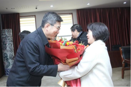 院长李云梅为荣休教师马克思主义学院王鹏院长献花