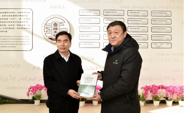学院党委书记戴裕崴将我院非洲职业教育研究中心形成的研究成果《中非职业教育合作研究》专著赠送给南宁市委副书记杨维超,并合影留念。院长李云梅向南宁学访团领导赠送了我院学生艺术作品。