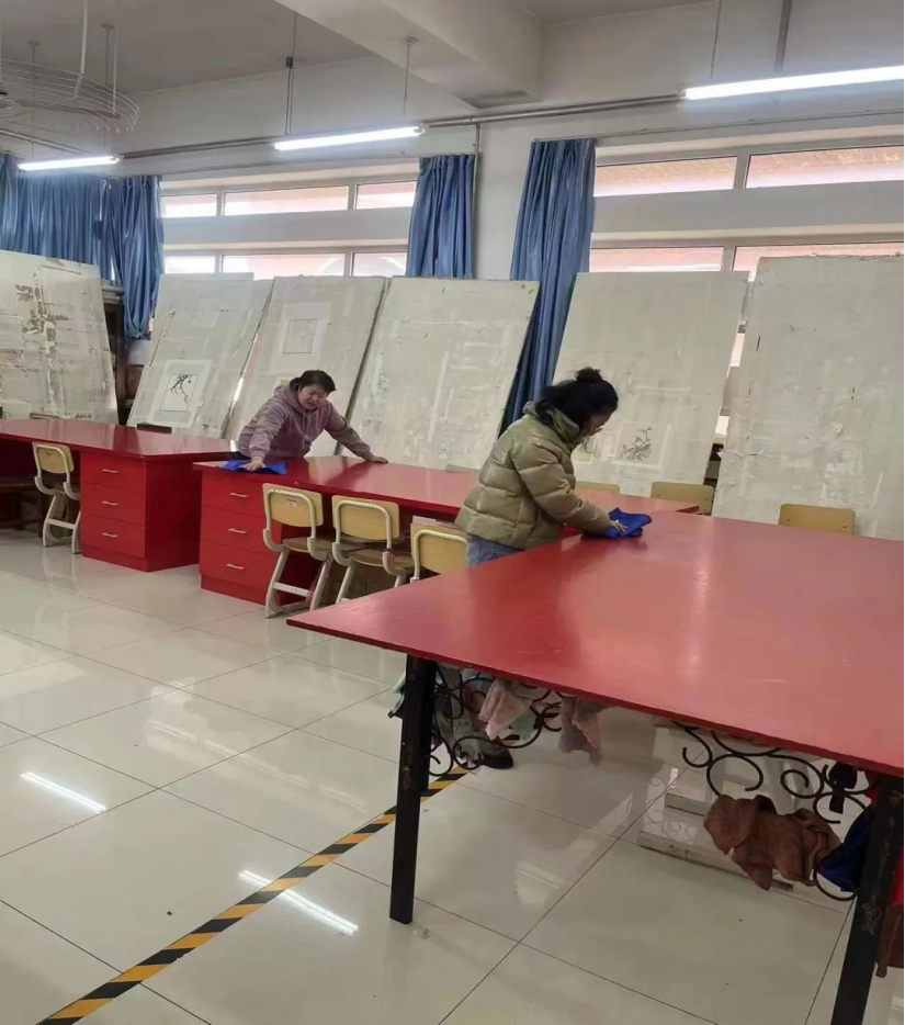 崭新的学期即将拉开序幕,为了给学院师生提供一个更加安全、卫生、舒适、整洁的环境。2月10日-14日期间,全院集中开展爱国卫生活动,对学院各教室、实训室、图书馆、办公区域、生活区域、食堂、商户及公共区域等进行了全面而细致的清洁消毒。让我们一起看看那些忙碌的身影吧!