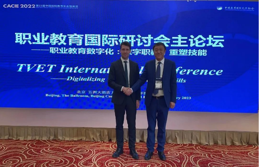 经国务院批准,2023年2月16-18日,第23届中国国际教育年会暨展览在北京成功举办。我院党委书记戴裕崴受邀在23届中国国际教育年会(职教分论坛)做案例分享并主持专题研讨,我院国际交流与合作部部长王娟,科研部张梦龙,共同参加了年会。