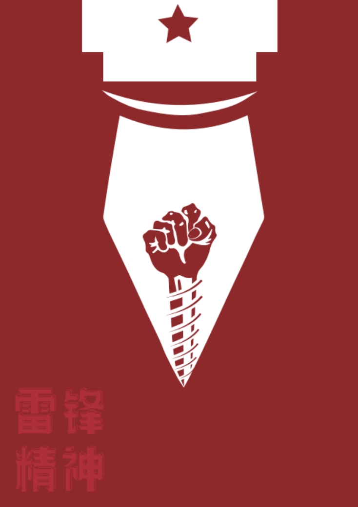 在海报设计中,作品整体配色采用了红色为主色调突出红色精神主题,在画面的视觉中心搭配上代表着“雷锋精神”的“雷锋帽”,形似默默无闻、无私奉献、充满泥土的大花盆,我们这些人民的“小花朵”在祖国的大地上汲取着来自这默默奉献着的花盆里的养分。作品以简单的形式突出主题,不管历史如何变迁,雷锋精神依旧在我们身上延续下去。