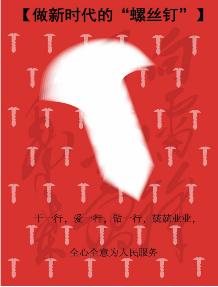 雷锋是我们心中“永不生锈的螺丝钉”。海报背景采用黄色和橙色,代表我们充满无限生机和活力,运用一颗颗钉子谱写歌唱祖国,意在表达我们每个人向雷锋同志学习,自觉融入党和人民的事业中去,干一行、爱一行、钻一行,立志在平凡中干出不平凡的业绩,定会使我们的祖国更加富强!