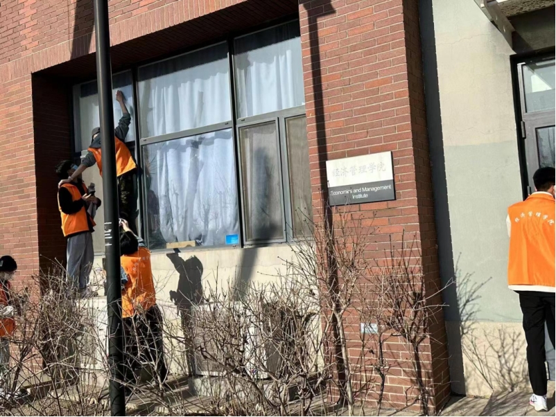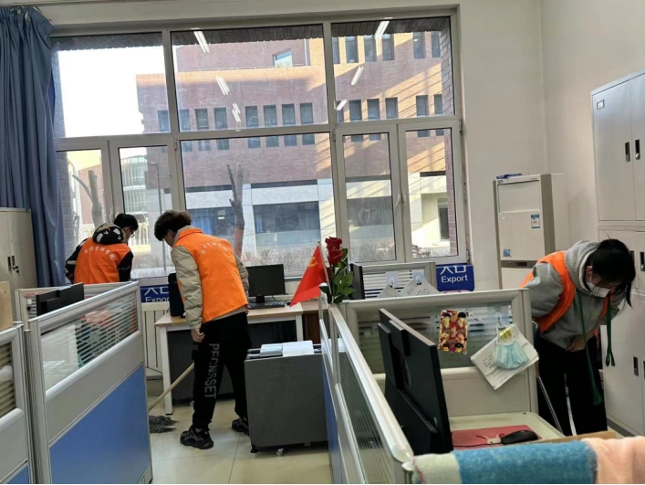 在活动中,一部分志愿者们都拿着扫帚、垃圾袋等工具,分段分人有序开展。一部分志愿者负责部分教室卫生,认真仔细的清理着每一处,将教室打扫的一尘不染。