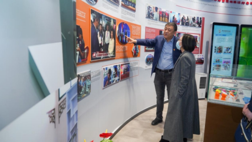 党支部会议后,党委书记戴裕崴陪同市国资委和渤轻集团督导组领导参观了鲁班工坊建设体验馆,并汇报了学院牵头建设的印度和埃及鲁班工坊成效,特别是发挥好鲁班工坊“一体两翼“作用,服务中资企业“走出去”情况,并赠送了《中非职业教育合作研究》专著。