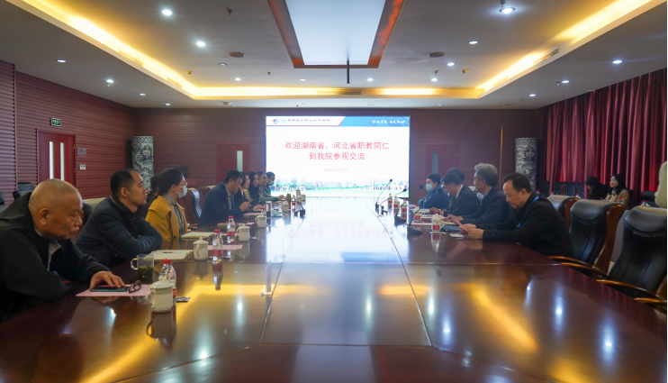 首先,学院党委书记戴裕崴对湖南省、河北省职教同仁的到来表示欢迎,并围绕建设规划、发展定位、办学特色、重点专业群建设、国际交流等方面介绍了我院整体情况。