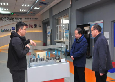 随后,学访团参观了精密模具协同创新研发中心,机械工程学院副院长周京向李辉校长一行介绍了我院与行业龙头企业开展校企合作的主要做法和成效。