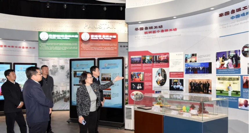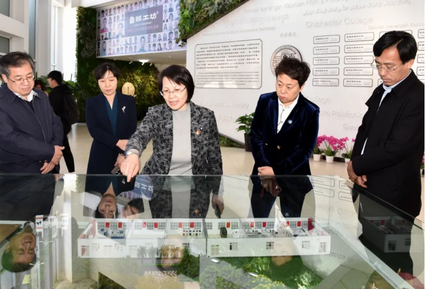 最后,李云梅院长陪同与会嘉宾参观了电子信息与自动化学院、鲁班工坊建设·体验馆。参观过程中,李云梅院长向与会嘉宾介绍了光伏工程技术国家级职业教育教师教学创新团队、电子信息与自动化学院专业情况和三菱电梯实训基地。在参观鲁班工坊建设•体验馆时,李云梅院长向与会嘉宾详细介绍了鲁班工坊建设•体验馆的建设历程及21个鲁班工坊的建设情况,与会嘉宾对我院的教育教学、鲁班工坊建设给予了高度认可。