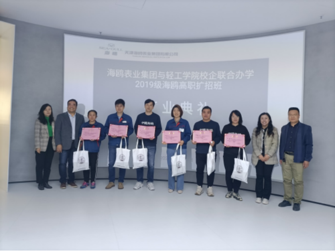 为深入学习贯彻党的二十大精神,落实《关于深化现代职业教育体系建设改革的意见》《国家职业教育改革实施方案》《职业教育提质培优行动计划(2020—2023年)》和天津市“十项行动”等文件精神,进一步推进并深化我院与天津海鸥表业集团的战略合作,2023年4月13日,我院院长李云梅,副院长刘悦凌,机械工程学院、校企合作与培训部、教务部相关负责人一行10人赴天津海鸥表业集团走访调研并举行海鸥集团39名百万扩招学生毕业典礼。天津海鸥表业集团党委书记、副总经理王钢,全国技术能手、国家级技能大师李家琦出席毕业典礼。