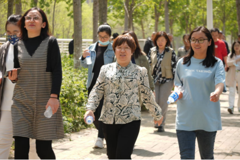 参加健步走活动的教职员工精神抖擞、阔步向前,一边呼吸着新鲜的空气,一边进行着工作和生活方面的交流,不时发出开心的笑声,感受着集体活动带来的愉悦。2.5公里的徒步路程既锻炼了身体、舒展了心情,又增进了彼此之间的交流。大家在欢声笑语中,充分感受“越运动、越健康”的理念。
