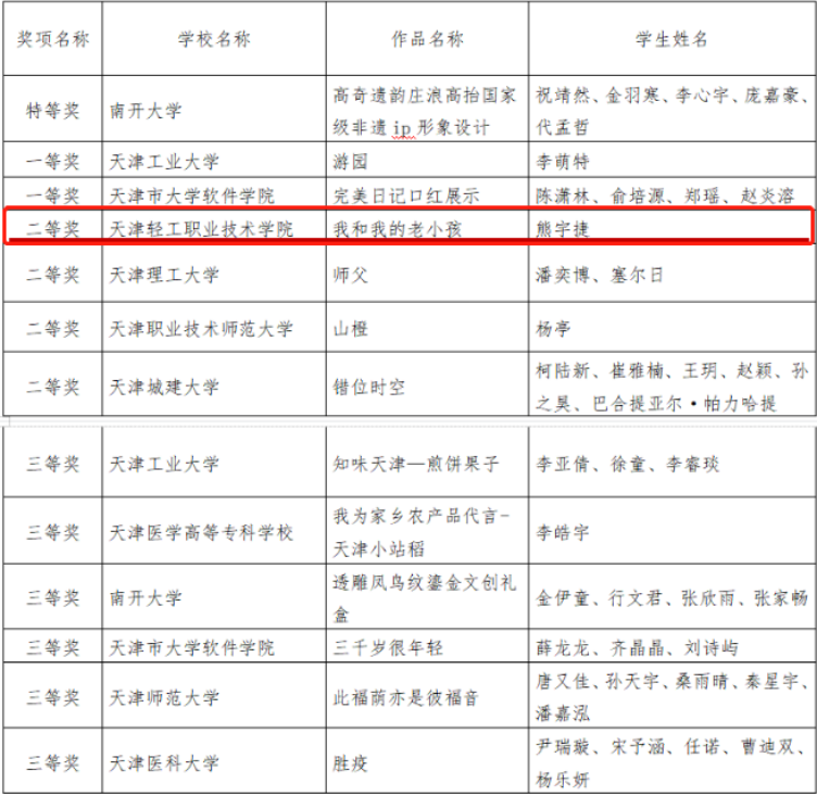 第二届天津市大学生新媒体创新创业大赛获奖名单