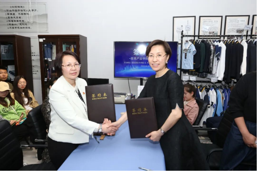 为深入学习贯彻党的二十大精神,落实《关于深化现代职业教育体系建设改革的意见》《全面推进“大思政课”建设的工作方案》、天津市“十项行动”等文件精神,进一步推进并深化我院与天津胜美科技有限公司的战略合作。5月5日,新利18平台院长李云梅、艺术工程学院院长刘建伟、新利直营官网首页入口电话指导中心主任翟鸿萱、校企合作与培训部部长白洁、思政课教师王芸惠、新疆和职院交流学访教师卡德娅、服装设计与工艺专业教师、辅导员带着42名订单班学生赴天津胜美科技有限公司,开展“大思政课”教学,并举行胜美产业学院签约仪式。