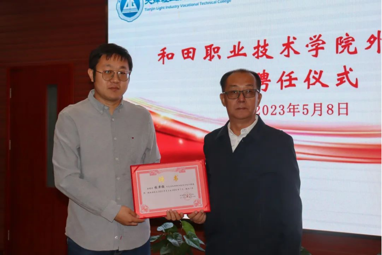 和田职业技术学院副院长耿铁军为我院教师杨槟、张津辅颁发聘书