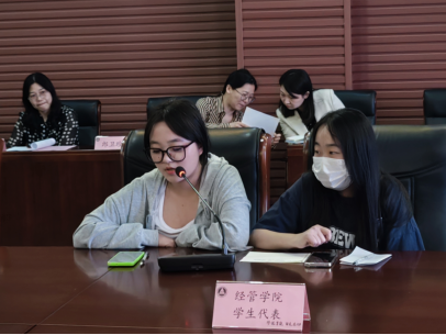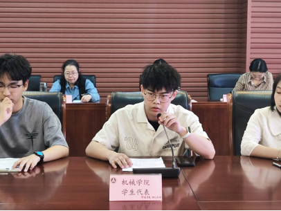 接下来,参会的学生代表依次发言。学生代表在充分调研的基础上对普遍关注的思政育人、教学管理、后勤服务、生活服务和校园活动等方面提出许多中肯的意见建议,展现了轻工学子的责任感和主人翁精神。