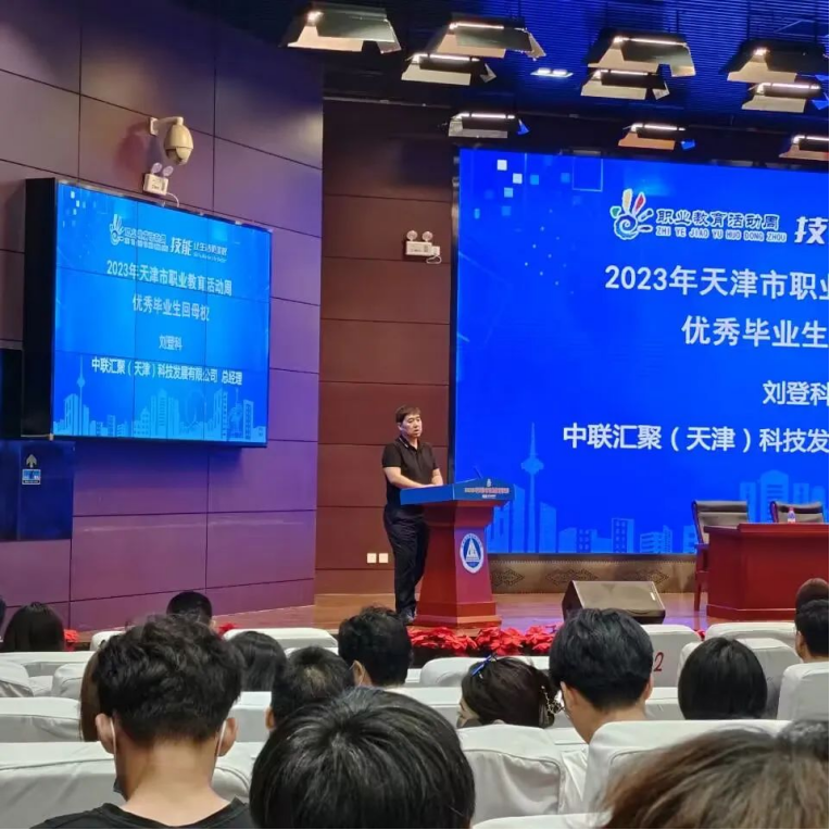 随后,优秀毕业生中联汇聚(天津)科技发展有限公司总经理刘登科回忆在轻工美好的大学时光,分享就业创业成长之路。介绍了与母校在校企合作、人才培养方面的密切联系,也对毕业生表达了期许,希望通过学校崭新的产教融合大楼,打造属于毕业生的载体。学校提供多通道的发展平台,希望一批又一批的优秀毕业生迅速成长,发挥自身价值,成就一番事业。