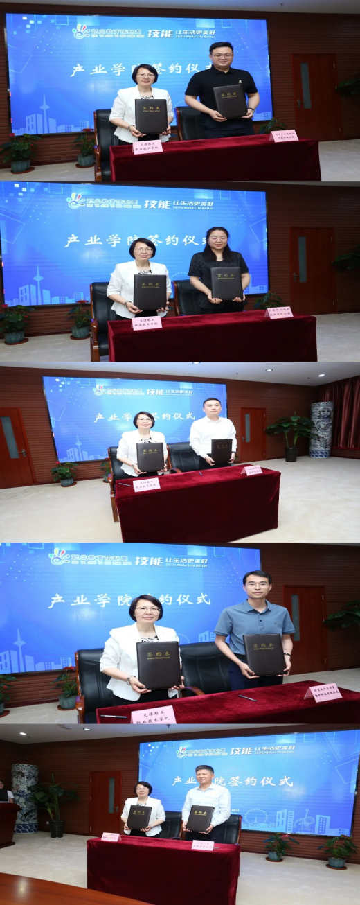 为进一步夯实校企合作基础,探索校企合作模式,会上,学院与上海三菱电梯有限公司签订校企战略合作暨准捐赠协议,与天津胜美科技有限公司、北京新大陆时代科技有限公司、上海三菱电梯有限公司签订校企合作董事会协议;与上海三菱电梯有限公司、浪潮软件股份有限公司、特变电工京津冀智能科技有限公司、山西华兴科软股份有限公司、北京新大陆时代科技有限公司签订共建产业学院协议,与北京新大陆时代科技有限公司、天津汽车模具股份有限公司、天津市鸿远电气股份有限公司签订现场工程师专项培养协议。