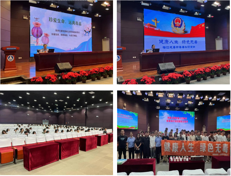 在讲座上,安妮、钟迪两位警官向同学们进行了禁毒知识的讲解,包括毒品的类型、新型活性物质、笑气等内容,系统地介绍了新型毒品的伪装形式以及抵制毒品的技巧,并通过多媒体课件、视频和图片等形式,展示了鲜活具体的真实案例。安妮警官以生动形象、诙谐幽默的语言,向师生讲解了如何识别毒品,阐明了毒品对社会、家庭以及个人带来的危害,提高了师生识毒、防毒、拒毒能力。