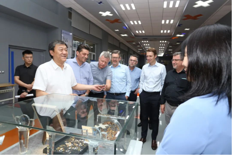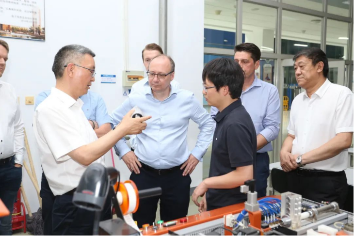 7月12日,瑞士GF Machining Solutions一行13人,包括欧洲及南美区域市场总监、德国市场总监、法国市场总监、西班牙市场总监、捷克市场总监、意大利市场总监、波兰市场总监、英国市场总监、瑞士销售及市场总监、中国市场总裁等高级别访问团来我校访问交流,学院党委书记戴裕崴及国际交流与合作部、机械工程学院和电子信息与自动化学院负责人接待来访,这是我校自2015年开始与瑞士GF加工方案集团深度合作以来,首个瑞士GF高级别专访团专程到校参观考察。访问团组先后参观了我校机械工程学院和电子信息与自动化学院实训基地,对我院与行业龙头企业“四中心一融入“的校企合作模式予以高度评价。
