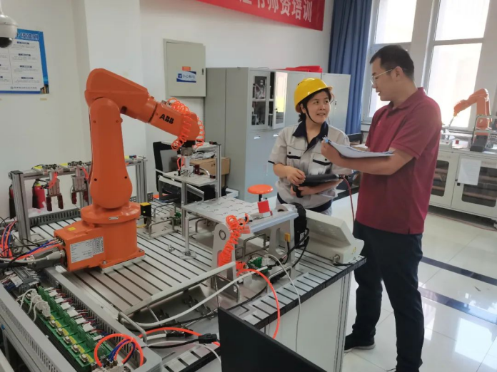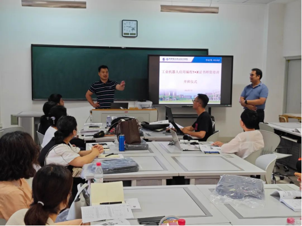 为深入贯彻《国家职业教育改革实施方案》精神,高质量推进工业机器人应用编程1+X证书制度试点工作及工业机器人技术应用领域相关专业“双师型”队伍建设,促进师资队伍教学实施、培训和评价等能力提升,促进1+X与专业建设、“三教改革”的融合建设水平,促进院校间的交流和合作,作为“工业机器人应用编程1+X”职业技能等级证书(中级)师资培训基地,新利18平台联合亚龙智能装备集团股份有限公司,于2023年7月10日至16日举办了本次工业机器人应用编程1+X师资培训。来自天津、黑龙江、山西等5所院校的20余名教师参加了本次培训。