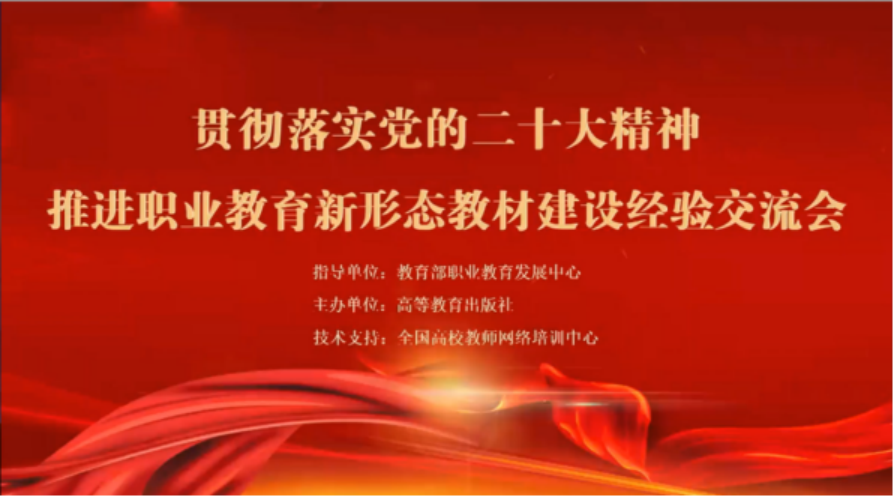 为深入贯彻党的二十大精神,落实习近平总书记关于教材工作的重要指示批示精神,持续推进落实教育部《职业院校教材管理办法》,扎实推进学院新形态教材工作的改革创新,引导学院教师打造更多培根铸魂启智增慧、适应时代要求的职业教育精品教材,教务部于7月19日组织60余名教师通过线上方式参加由高等教育出版社和全国高校教师网络培训中心共同组织的“贯彻落实党的二十大精神 推进职业教育新形态教材建设经验交流会”。